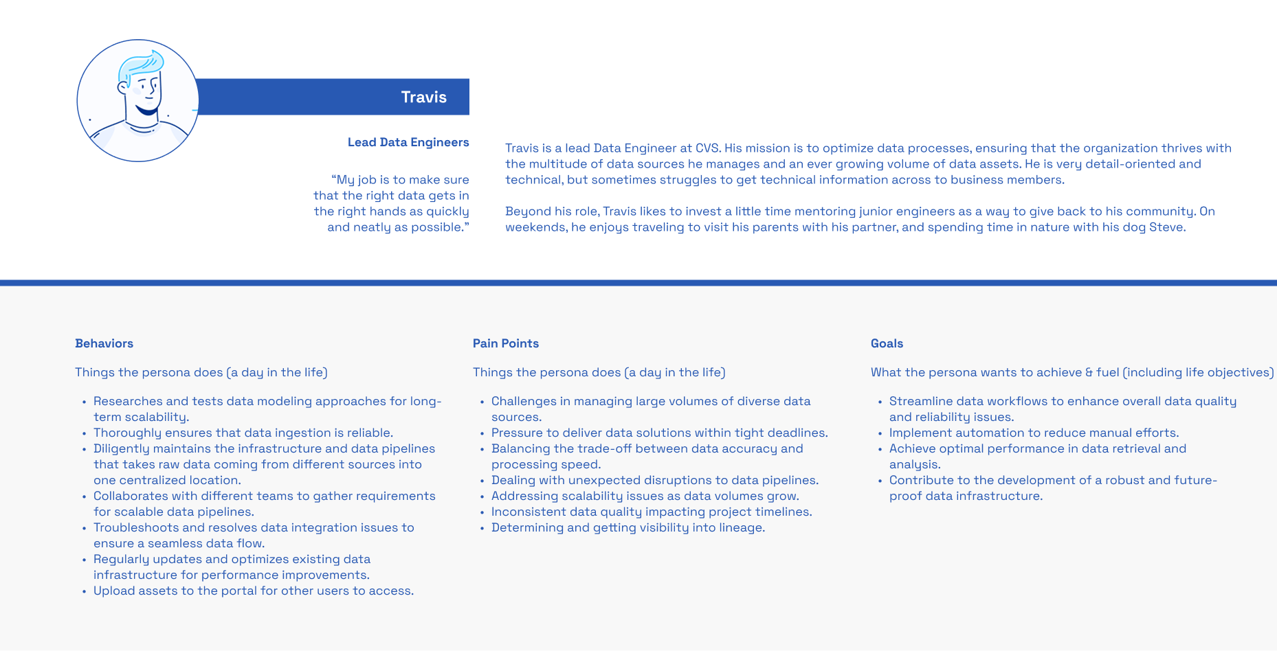 CVS Health's Enterprise Data Platform and its frontend application, the Data Portal, serve a diverse set of users with varying levels of technical expertise, data literacy, and jobs that revolve around data in their day-to-day. As the platform grew, the absence of a mutual understanding of our users made it challenging to address any of their needs effectively.